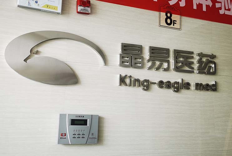 長沙醫(yī)藥公司不銹鋼立體字制作的電梯口形象墻。
